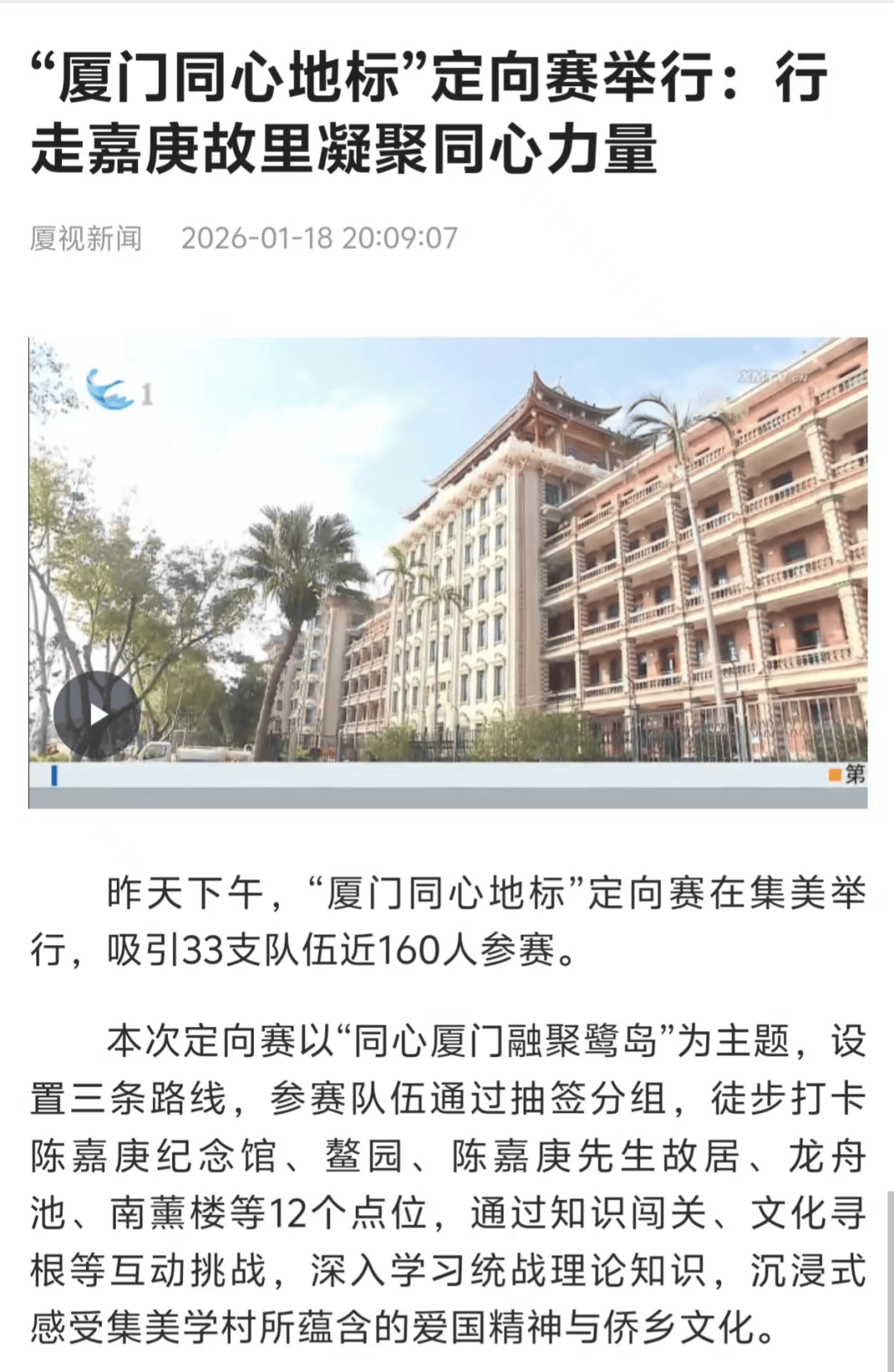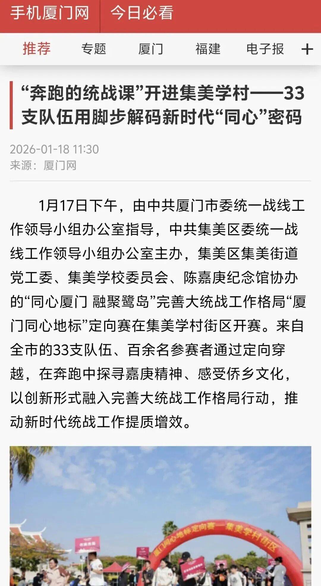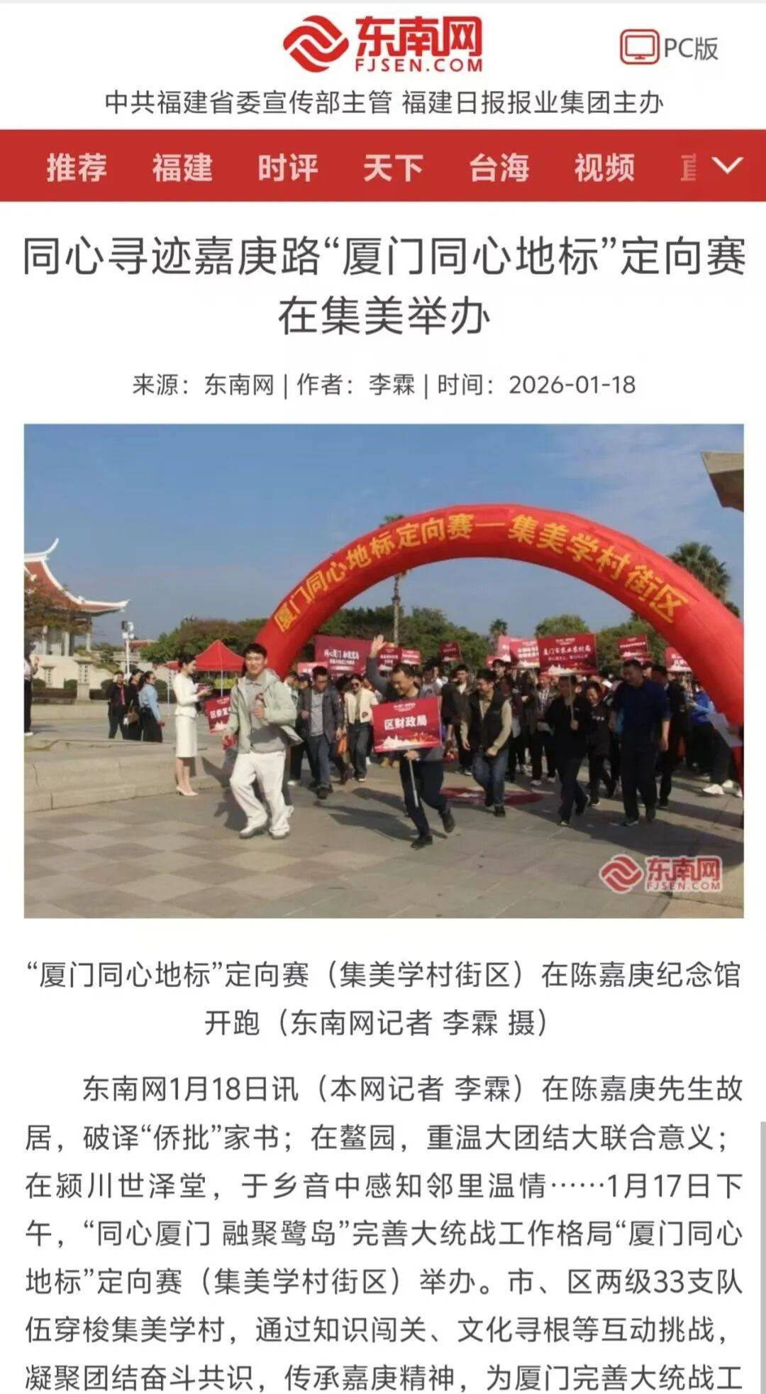 也是夯实工做从体义务的明责履责之行,东南网报道《齐心寻迹嘉庚“厦门齐心地标”定向赛正在集美举办》。