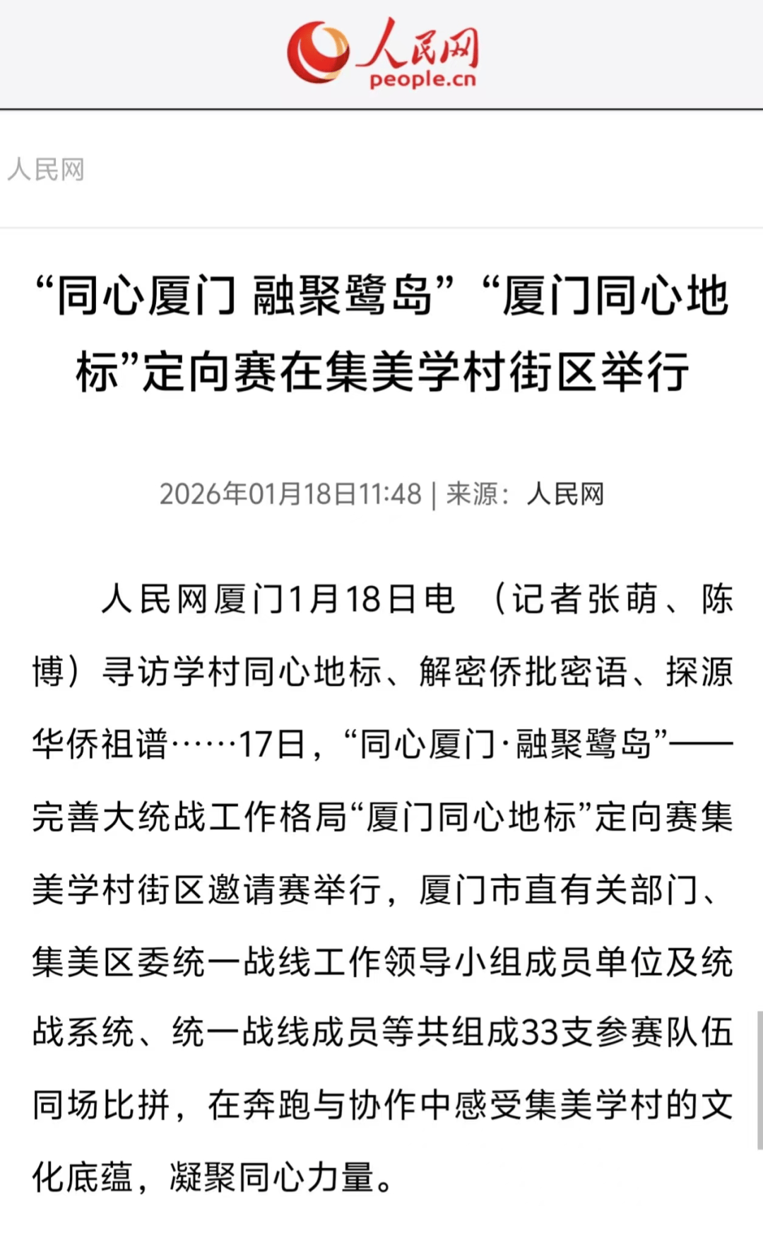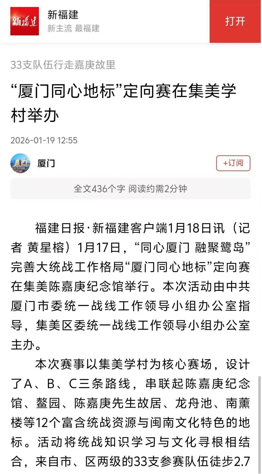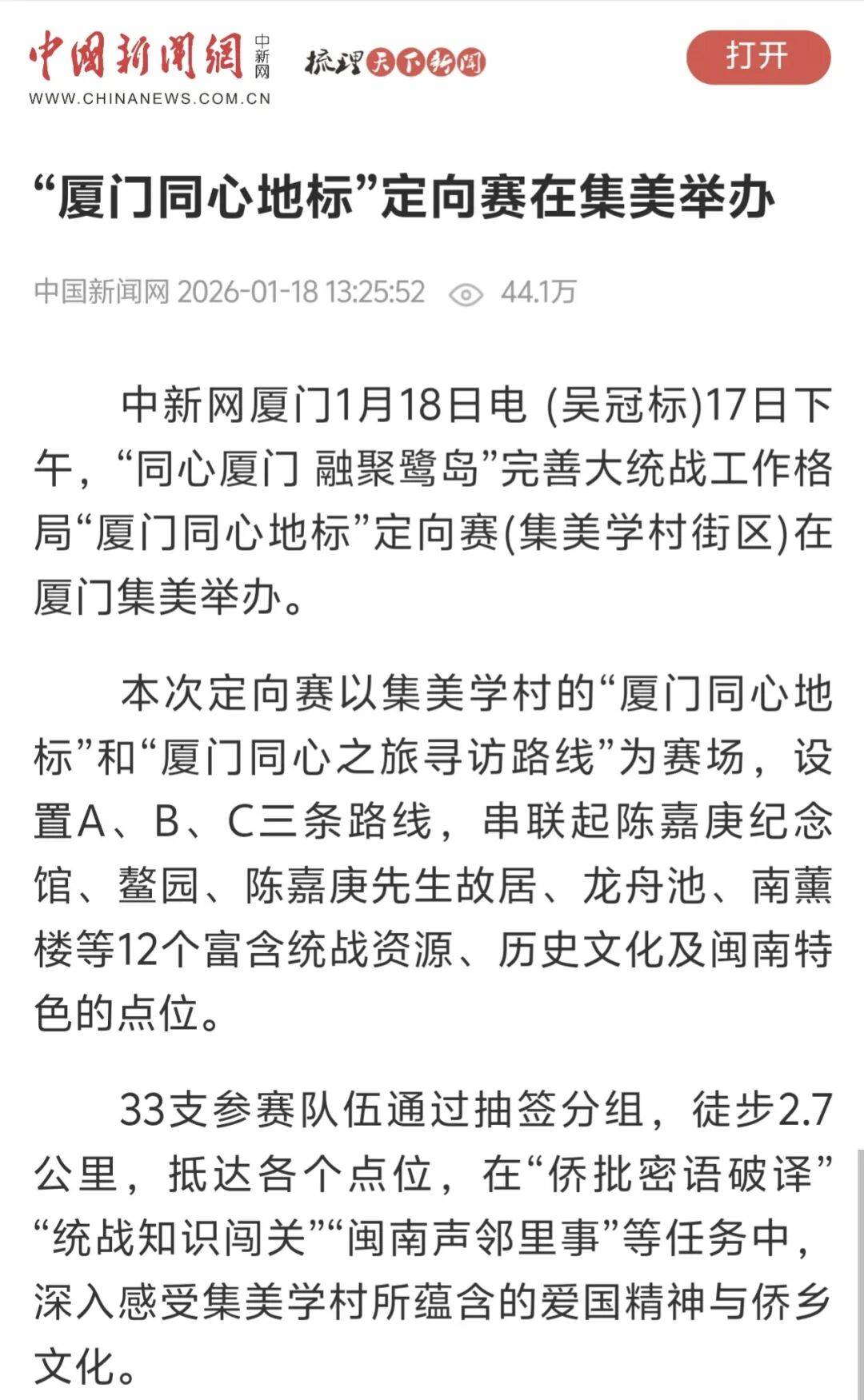 也是夯实工做从体义务的明责履责之行,东南网报道《齐心寻迹嘉庚“厦门齐心地标”定向赛正在集美举办》。